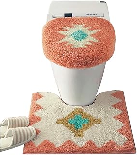 12色選べる トイレマット 3点セット ハワイ 花柄 心柄 猫柄 可愛い 便座シート 便座カバー 洗浄暖房型 角型 ロング 耳長 フワフワ 吸水 速乾 防寒 保温 水洗い 防臭 浴室 バス 家庭用オレンジ