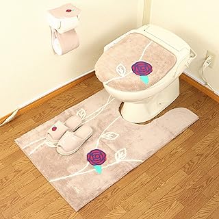 耳長 トイレマット セット 4点 ベージュ 吸着タイプ 北欧 おしゃれ かわいい 洗浄暖房型 普通型 フラワー 4点セット オカ エトフ トリア