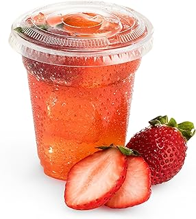 Green Direct Plastic Ultra Clear Cups With Flat Lids for Iced Coffee Bubble Boba Tea Smoothie (100, 8 Ounce) by Green Direct