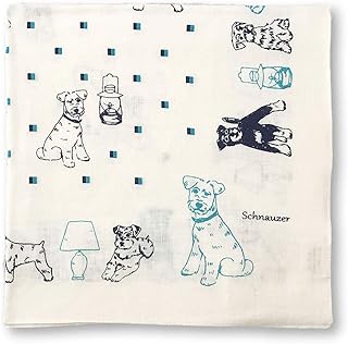 (リネンラ・ヴィ)Linen la vie 「シュナウザー」 日本製 リネン 麻100% ハンカチ スカーフ 風呂敷 お弁当包み 女性用 男性用 44cm 大判 犬猫 ギフト対応可 (ホワイト)