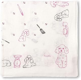 (リネンラ・ヴィ)Linen la vie 「プードル」 日本製 リネン 麻100% ハンカチ スカーフ 風呂敷 お弁当包み 女性用 男性用 44cm 大判 犬猫 ギフト対応可 (ホワイト)