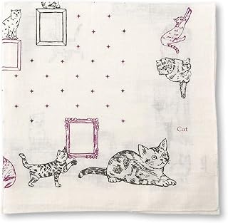 (リネンラ・ヴィ)Linen la vie 「キャット」 日本製 リネン 麻100% ハンカチ スカーフ 風呂敷 お弁当包み 女性用 男性用 44cm 大判 犬猫 ギフト対応可 (ホワイト)