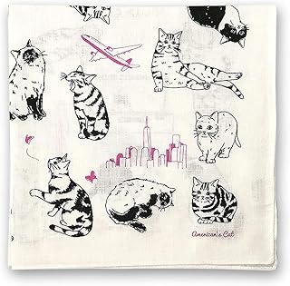 (リネンラ・ヴィ)Linen la vie 「アメリカン キャット」 日本製 リネン 麻100% ハンカチ スカーフ 風呂敷 お弁当包み 女性用 男性用 44cm 大判 犬猫 ギフト対応可 (ホワイト)
