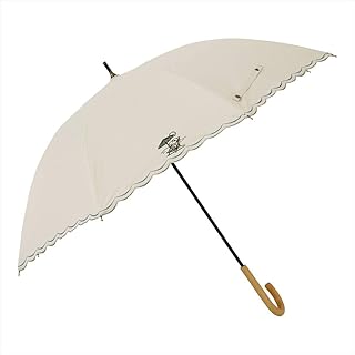 小川(Ogawa) 日傘 レディース 長傘 遮熱 遮光 UVカット 99%以上 8本骨 50cm ピーナッツ まったりビーチ ホワイト 刺繍 はっ水 安全カバー 裏側黒コーティング 90272