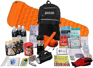 ピースアップ 防災セット 1人用 (高機能エアーマット付)(マットオレンジ×1 リュック40Lブラック) 【警戒レベル4】 全員避難! SAFETY FIRST 防災グッズ セット 一人用