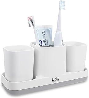 歯ブラシホルダー バスルーム用 歯ブラシスロット3つとカップ2つ 電動歯ブラシホルダー 歯磨き粉ストレージオーガナイザー ホワイト