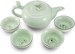 Happy Sales HSTS-KFCG05 青磁 中国カンフ 8液量オンス ティーポット ティーカップ 4本 手描き 鯉 鯉 ティーセット
