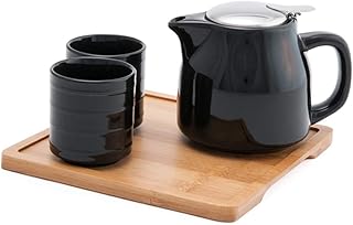 Happy Sales HSTS-T2BLK ティーセット 20オンス ティーポット 2カップと竹製トレイ ブラック