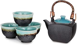Happy Sales HSTS-TRQBLU 日本製磁器ティーセット 20液量オンス ハンドル付きティーポット ティーカップ4個 各6液量オンス ターコイズオーシャンブルー