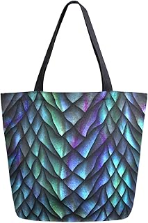 ALAZA ドラゴンスケール キャンバス トートバッグ トップハンドル ハンドバッグ 大きなトート 再利用可能なハンドバッグ コットンショルダーバッグ 女性用 旅行 仕事 買い物