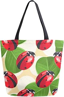 ALAZA テントウムシ キャンバストートバッグ レディース 旅行 仕事 ショッピング 食料品のトップハンドルハンドバッグ 大きなトート 再利用可能なハンドバッグ コットンショルダーバッグ