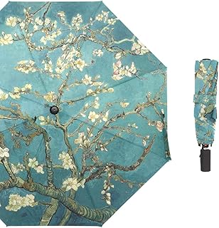 ALAZA 絵画 ゴッホ 梅花 油絵 折り畳み傘 手動 レディース 軽量 晴雨兼用 手開き 耐風撥水 梅雨対策 頑丈な8本骨 収納ケース付