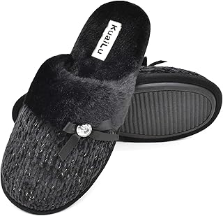 KUAILU レディース 快適 キュート スリッパ 低反発素材 ファックス ファー ハウス スカッフ スリップオン 滑り止め ホームスリッパ シェニールニット 暖かいフリース裏地付き 屋内/寝室用