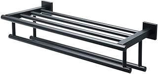 Alise GY6000-B バスルームタオルラック タオルシェルフ タオルバー2本とタオルフック2個付き 壁掛けタオルホルダー SUS 304 ステンレススチール マットブラック