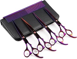 ペットトリミング fengli 19cm ステンレス材質 ペットトリミングセット ペット用はさみ くし トリミングシザー ペット用 トリマー入門に ハサミ シザース トリマー セニング カット 犬 猫 自宅 毛 切る 全身美容 丸い先端 コーム 安全性高い Scissors 手頃 専用ケース付き 色(紫)