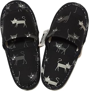 ベーシックスタンダード スリッパ レディース かわいい ネコ 猫 黒ねこ いっぱい モチーフ デザイン 春 夏 前開き ブラック - 日本製